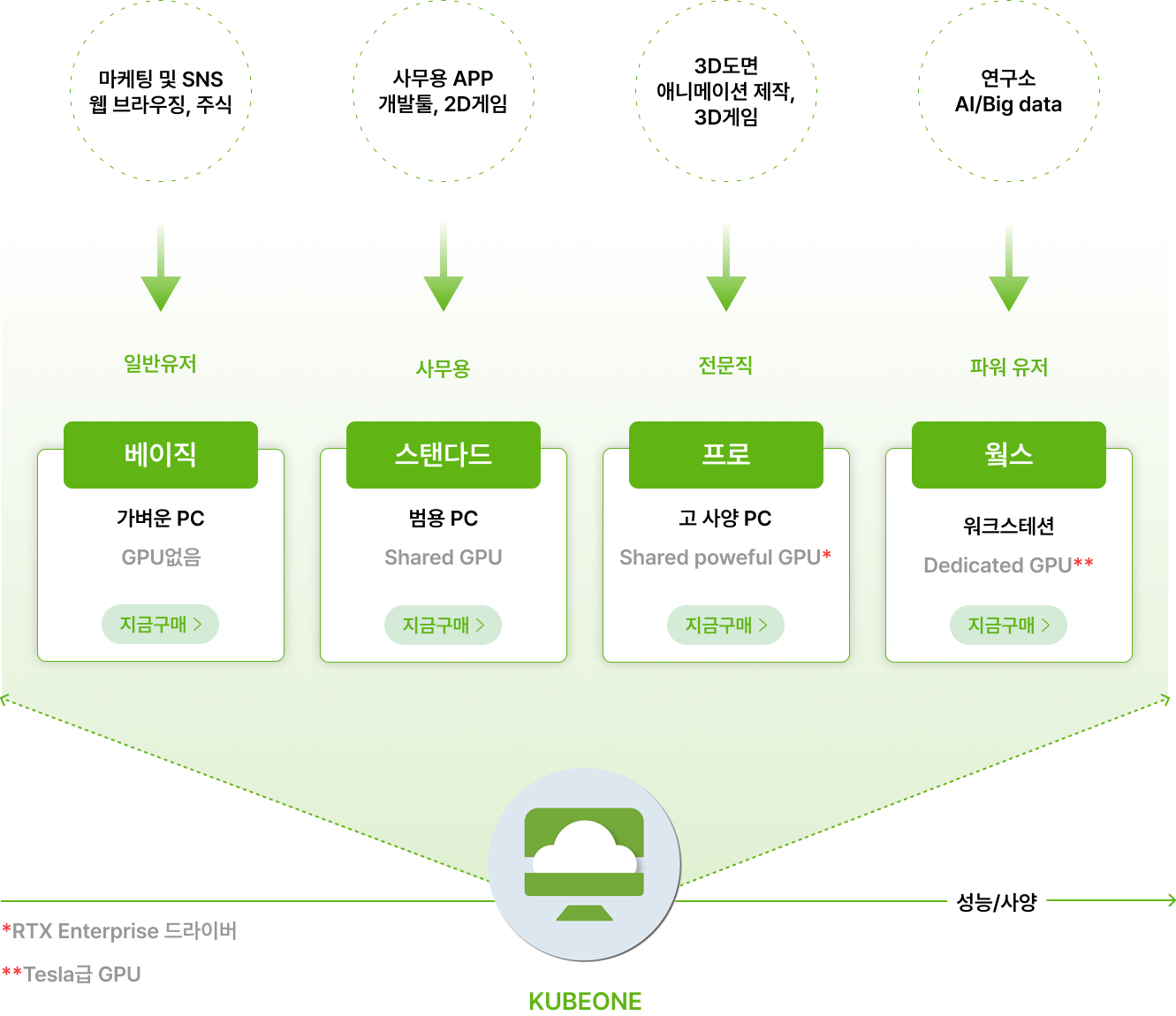 가상 머신(VM)이 고성능 가상 그래픽 카드를 공유하여, 더욱 향상된 성능은 물론 GPU의 연산 능력을 활용하는 애플리케이션도 문제없이 구동됩니다.